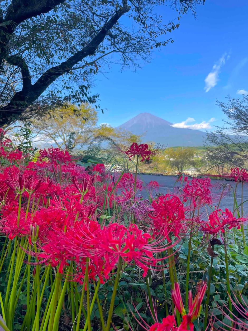 From Kotokuji Temple, a great spot to see red spider lilies and Mt. Fuji