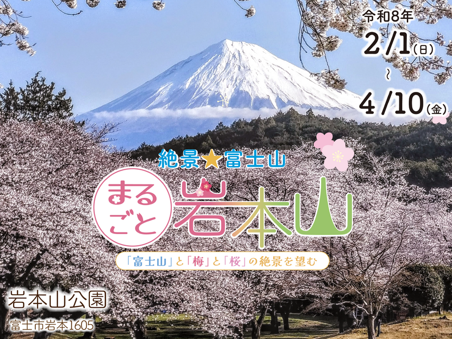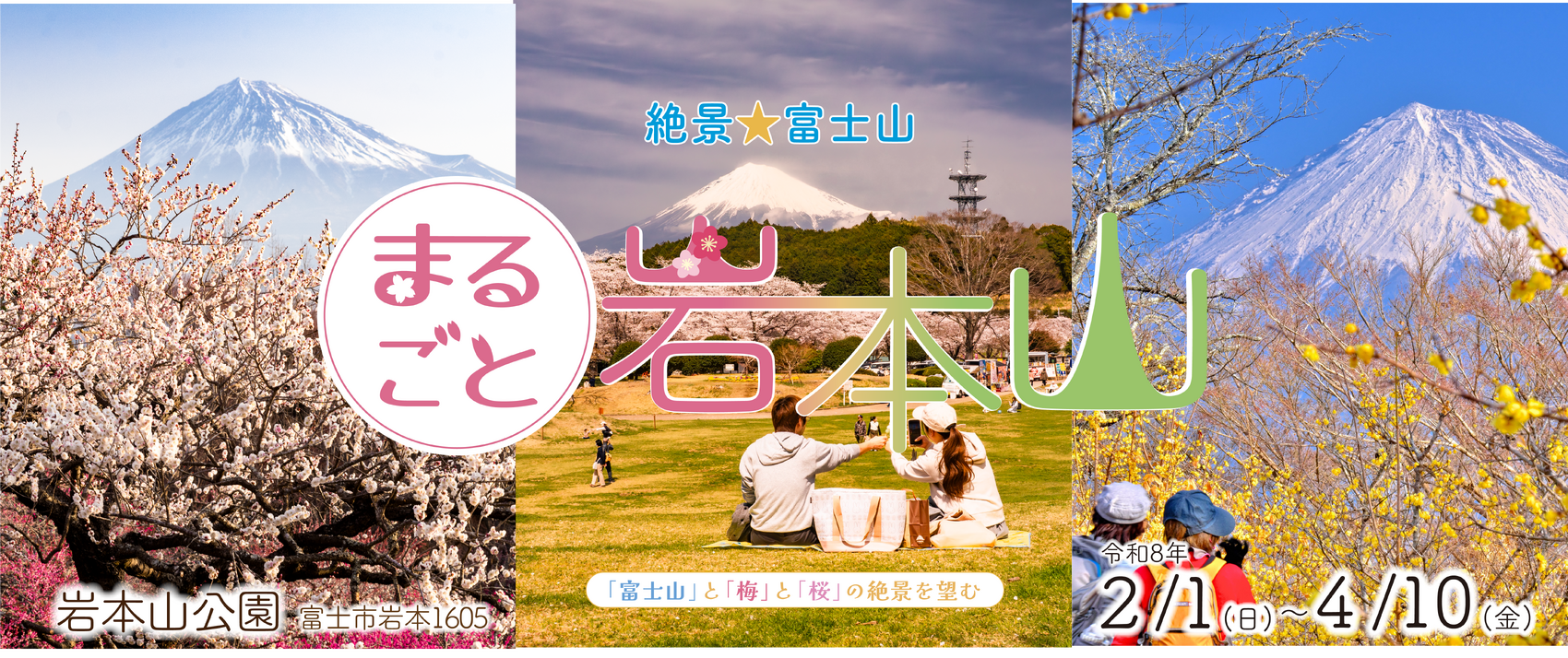 世界遺産富士山と岩本山公園の梅と桜の美しい眺望を体感!