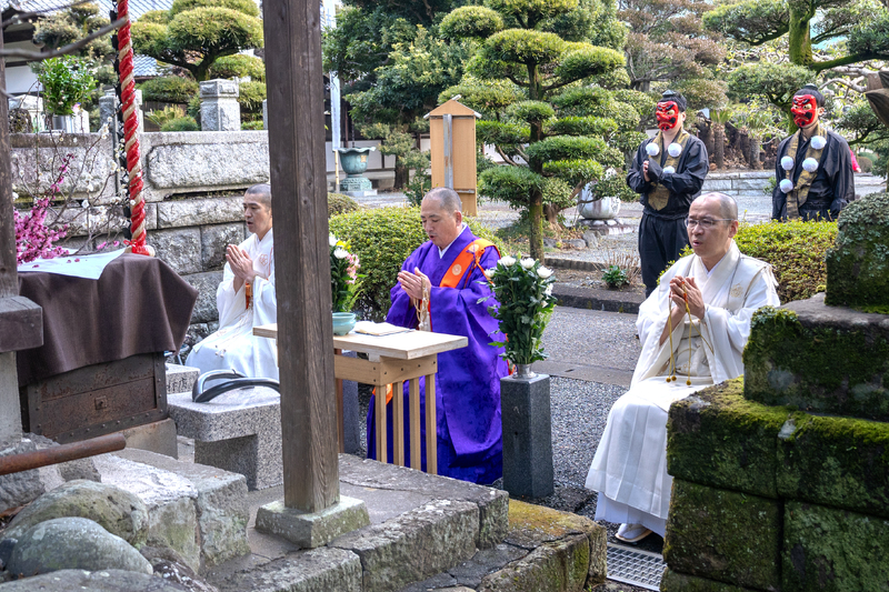 9時から實相寺にまつわる伝説の天狗が、梅の小枝を手に祈祷を受けます。